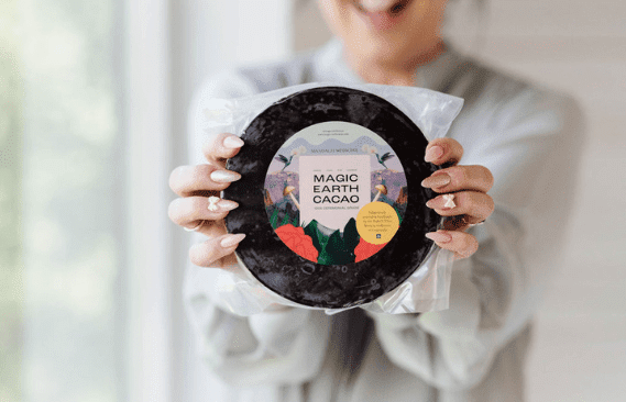 This cacao is 100% Mayan owned and grown on an indigenous family farm in San Marcos, Guatemala. It is made by the Ruku’x’Ulew women’s collective who hand roast it over an open fire and ground it into discs of paste.